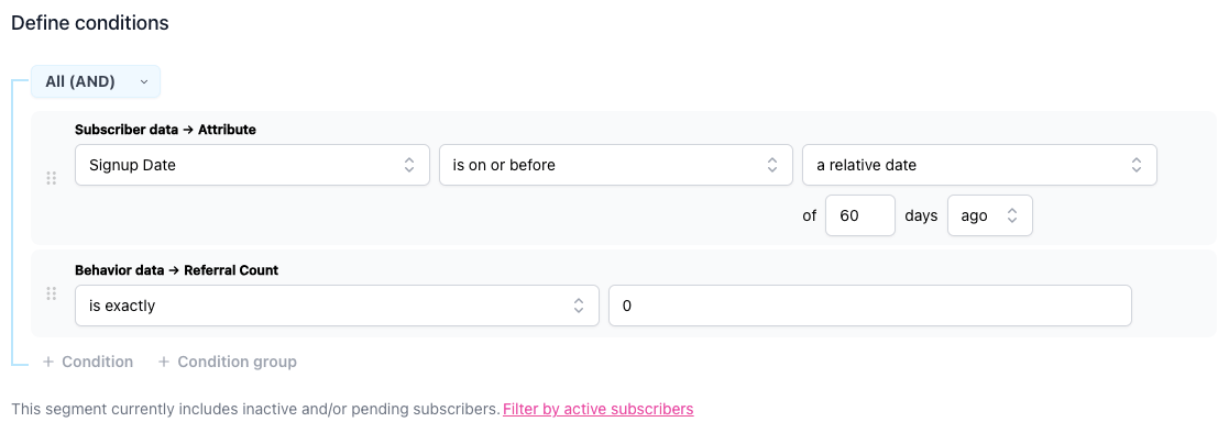⚪️ Build Segment #3 - Subscribers who referrals = 2
